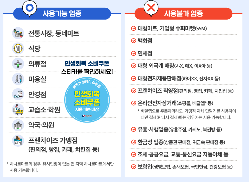 소비쿠폰은 가맹점 표시가 있는 소상공인 매장에서만 사용 가능합니다.