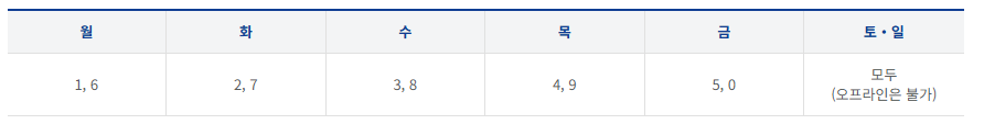 ✔ 출생연도 끝자리 요일제 운영: